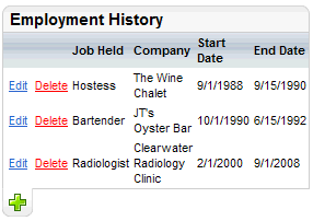 Click on an Edit link or the plus button to open the Employment History window.